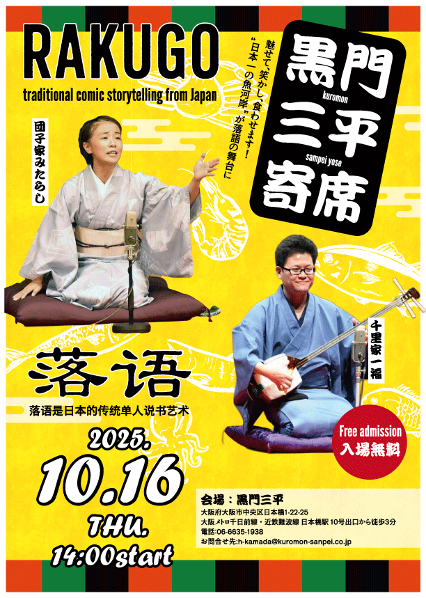 イベント情報2025年10月8日【告知】黒門三平 落語寄席