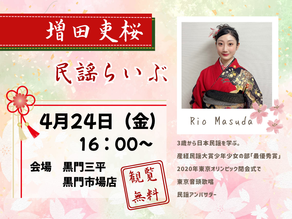 黒門三平 黒門市場店では、4月に3つのライブイベントを開催いたします。